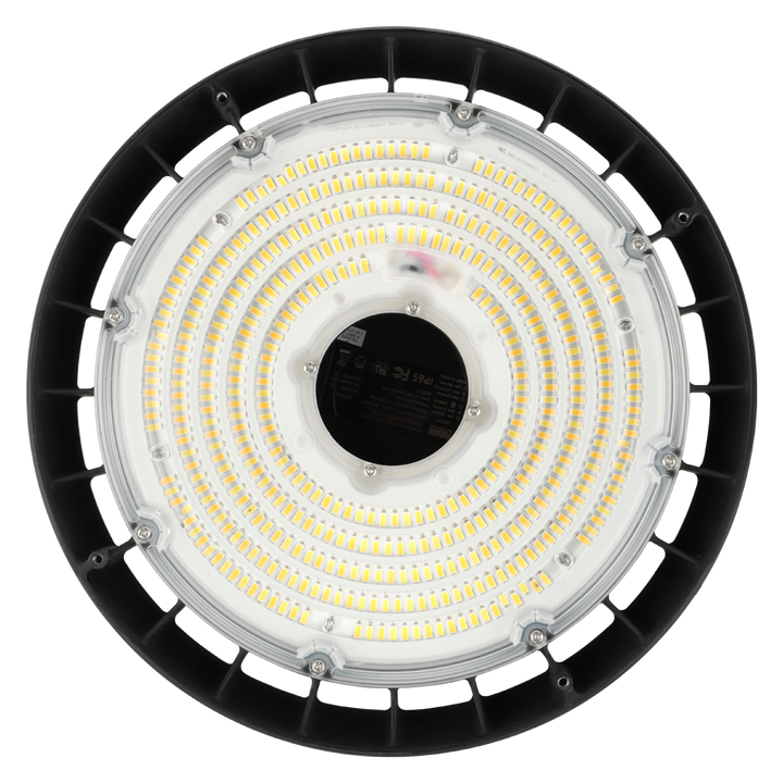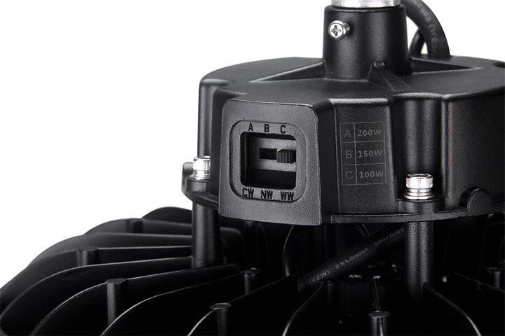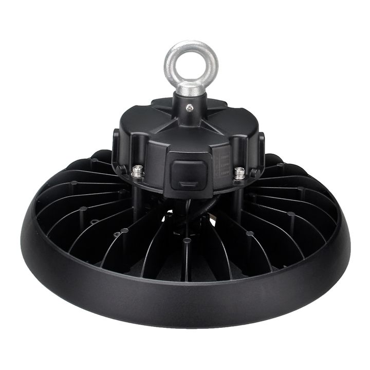 ° Luminaire industriel de Haute efficacité jusqu'à 153Lm/w de type Cloche LED à suspendre. Idéale en application dans l’industrie, montage en ligne et dans des zones à hauts plafonds comme les magasins, les centres commerciaux, les aéroports et stades.° Corps du luminaire réalisé en aluminium moulé sous pression avec revêtement époxy Noir.