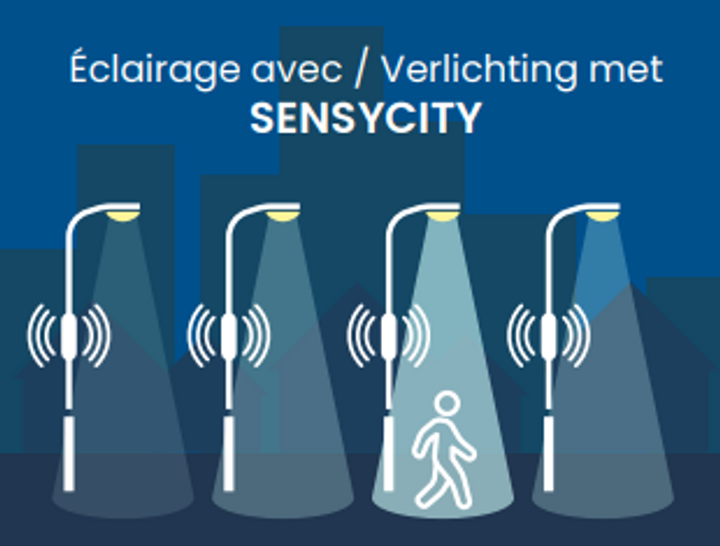 SensyCity maakt het mogelijk om verlichting aan te passen door middel van directe lokale draadloze communicatie tussen lichtpunten. SensyCity staat open voor de verschillende sensoren in de stad en is eenvoudig interoperabel (voetgangers, fietsers, voertuigen, enz.).